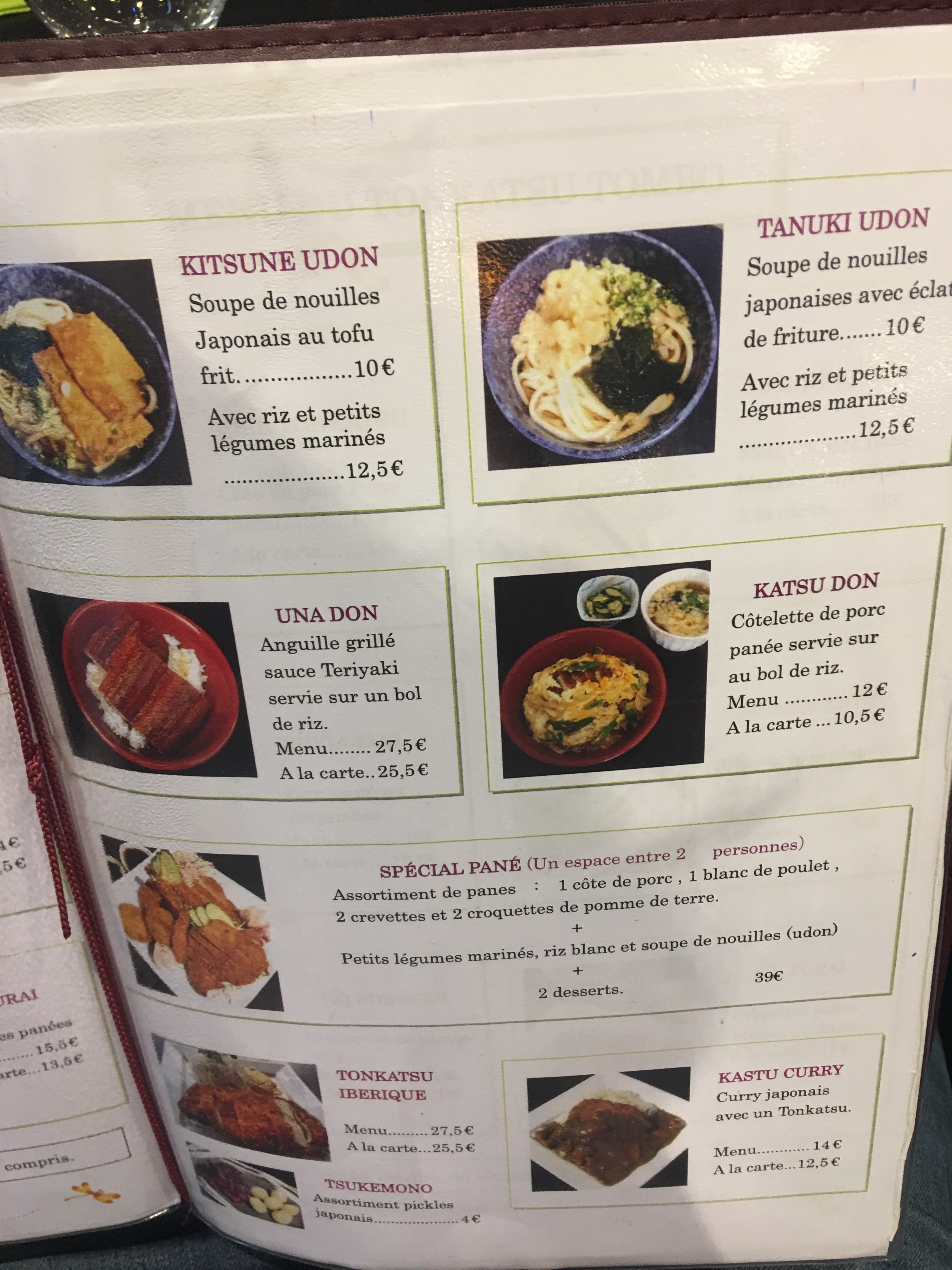 Dès l’entrée l’annonce est faite: « la maison ne fait ni sushi ni sashimi », on est avertis. Très belle expérience culinaire avec du sourire en sus. Un menu à 18,50€ plus une bière sapporo le tout pour 24€. Perso j’ai pris une escalope de porc panée (Rose Tonkatsu) et avec son entrée et sa garniture c’est amplement suffisant. J’y retournerai pour goûter d’autres spécialités
