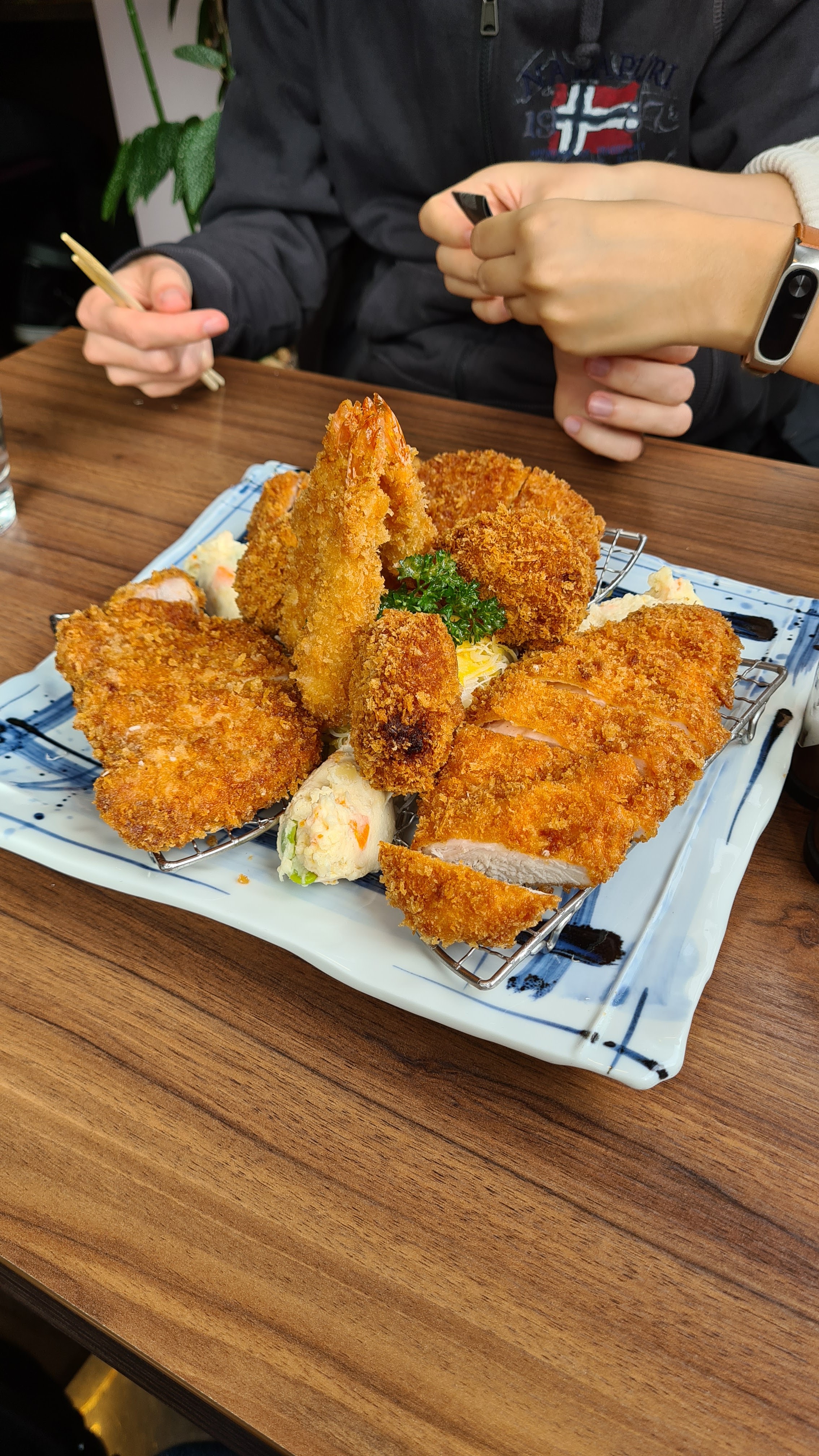 Nous avons mangé à deux lors d'une soirée après avoir réservé. Ayant pris le menu spécial pour deux personnes, tout ce que nous avons mangé étaient absolument délicieux ! C'était à la fois croustillant à l'extérieur et vraiment tendre à l'intérieur avec énormément de goût ! Les fritures sont accompagné d'une soupe de udon très très bonne, du riz et une petite portion de légumes qui vont parfaitement avec les fritures. Et pour finir, un petit dessert pour bien digérer et pour très bien finir. Je reviendrai à coup sur ! C'est une très bonne expérience ! Ps: les serveurs sont vraiment aux petits soin et sont vraiment sympa !