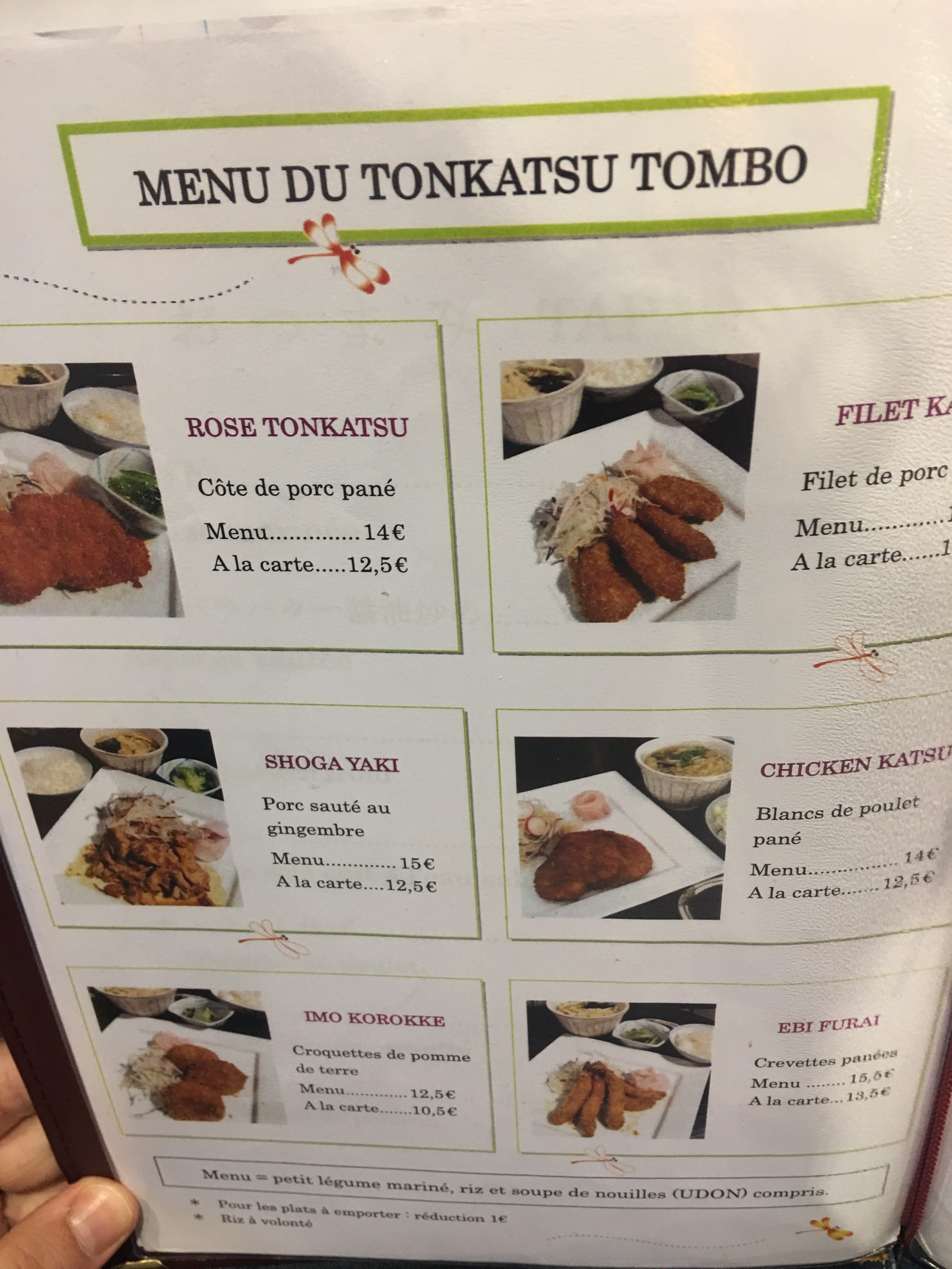 Redécouverte du seul restaurant japonais de Paris spécialisé dans le Katsu. Nous sommes chez Tonkatsu Tombo qui a ouvert ses portes en 2010 grace au chef Yugami Kunimitsu qui est passé par le premier restaurant de katsu de paris, Momonoki mais qui a fermé. Le Katsu est un plat populaire au Japon aussi bien cuisiné en famille que dans des petits restaurants souvent pas loin d'une gare. Tonkatsu Tombo est donc un petit restaurant familial pour déguster des recettes de katsu. Au déjeuner le restaurant est très fréquenté grâce en partie à ses menus avec un très bon rapport qualité-prix. Il faut compter entre 15 et 25€ en fonction du plat choisi avec une soupe de udon, riz, potato salade, chou et petits légumes vinaigrés. Il y a même des plats du jour comme par exemple un oyakodon ou bien du saumon grillé au miso.